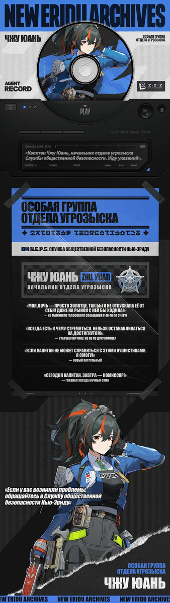 Разработчики приключенческой игры Zenless Zone Zero из студии HoYoverse представили досье персонажа Чжу Юань. Девушка работает начальником отдела уголовного розыска Службы общественной безопасности. Напомним, что сейчас идет набор заявок на грядущее закрытое бета-тестирование ZZZ, а также несколько ивентов, приняв участие в которых, вы получите шанс выиграть доступ на ЗБТ и много крутых призов. Но о дате релиза информации пока нет. “Zenless Zone Zero — этот мир опасен, всегда подвержен угрозе от таинственных бедствий, известных как "Каверны", где старая цивилизация уничтожена, а мир находится в руинах. К счастью, один город все еще способен справляться с этими бедствиями: Нью-Эриду.Здесь собирается разнообразная группа людей с разными мотивами и убеждениями, чтобы бросить вызов Кавернам.А вы — их незаменимый соучастник, направляющий их из Каверн, их "Прокси". Это ваша история.”