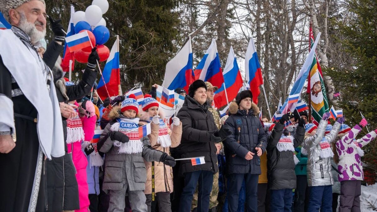 Сегодня, 18 марта, страна отмечает День воссоединения Крыма с Россией. «Крымской весне» исполнилось десять лет. Митинг в честь юбилейной даты в Салехарде посетил глава Ямала Дмитрий Артюхов. В Салехарде прошел митинг к десятому юбилею воссоединения Крыма с РФ. Разделить праздничное настроение пришли сотни салехардцев, передает корреспондент «Ямал-Медиа». Губернатор ЯНАО Дмитрий Артюхов подчеркнул важность этого события для России. «Крымская весна» нашла глубокий отклик в сердцах каждого из нас. Стала ярким напоминанием о том, что сила нашего народа — в неизменном стремлении к единству и сплоченности. Нас объединяют общие ценности, историческое наследие, мы вместе идем в будущее, наполненное миром, процветанием и благополучием», — сказал Дмитрий Артюхов. Фото: t.me/smyamkin О том, что прямо сейчас, как и той Крымской весной, наши бойцы помогают новым регионам России почувствовать себя в безопасности, рассказал участник СВО Владимир. Во время концерта выступила и Елена Филатова — крымчан