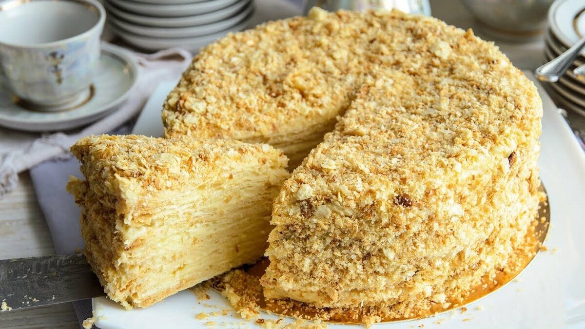 Теперь ваш торт "Наполеон" готов к подаче! Наслаждайтесь этим великолепным десертом вместе с вашими близкими и гостями.