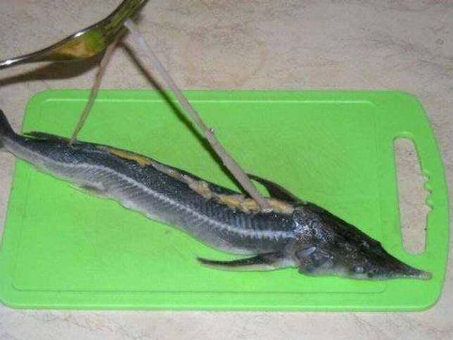 Пирожки с вязигой – популярное когда-то блюдо русской кухни… Хм, а что такое вязига? Понятно, что это какая-то начинка, но что именно?! Оказывается, визи́га (также вязига) – это название хорды, добываемой из осетровых рыб. Хорда, в свою очередь, это орган, помогающий управлять спинными мышцам. Его ещё называют спинной струной или тяжем. Хорда есть у всех позвоночных, но ещё в фазе эмбрионального развития она замещается позвоночником. А вот у осетровых – представителей древнего семейства рыб – хорда сохраняется всю жизнь в виде непрерывного шнура из довольно плотной пузырчато-клеточной ткани. Этот шнур идёт вдоль всего хрящевого позвоночника осетровых. При разделке осетровых рыб визигу вытаскивали целиком в виде длинной ленты, мыли, отделяли от хрящеватой оболочки и сушили в специальных деревянных пирамидках с щелевидными отверстиями. Ветер обдувал сохнущую визигу и через некоторое время продукт был готов к продаже или долговременному хранению. После просушки эти ленты связывали для про