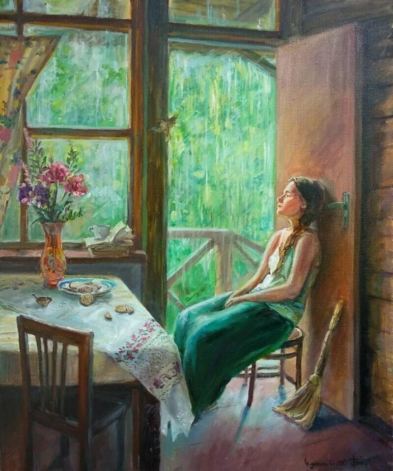 Здравствуй, дорогой читатель! Картины – словно машина времени, которая непременно отправляет вас в до боли знакомое, прошлое, где утром вас встречает запах бабушкиных пирожков, деревенский петух и тот теплый уют, что царит в сердце до сих пор, при воспоминании о чудесных днях, проведенных в деревеньках, с их старенькими избушками, добрыми бабушками и дедушками. Так вот такой машиной времени обладает калужская художница Настасья Чудакова, из-под кисти которой выплывают добрые и милые образы чудесного прошлого. Настасья Чудакова родилась в Калуге и все детство провела, окружая себя творчеством. В юности мечтала поступить на направление «станковой живописи» в калужский колледж культуры, но, к сожалению, провалила экзамены. В целом, Настасью можно назвать – самоучкой в деле искусства, но сей факт не делает талант художницы менее значимым и заметным. У автора есть уникальная возможность развивать свое творческое мастерство под руководством Улыбина Геннадия Александровича – заслуженного росс
