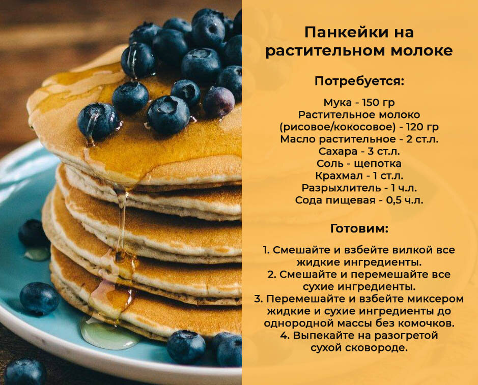 1. Панкейки на растительном молоке 2. Кукурузная каша с тыквой 3. Запеканка из тыквы 4. Ролл из лаваша с авокадо