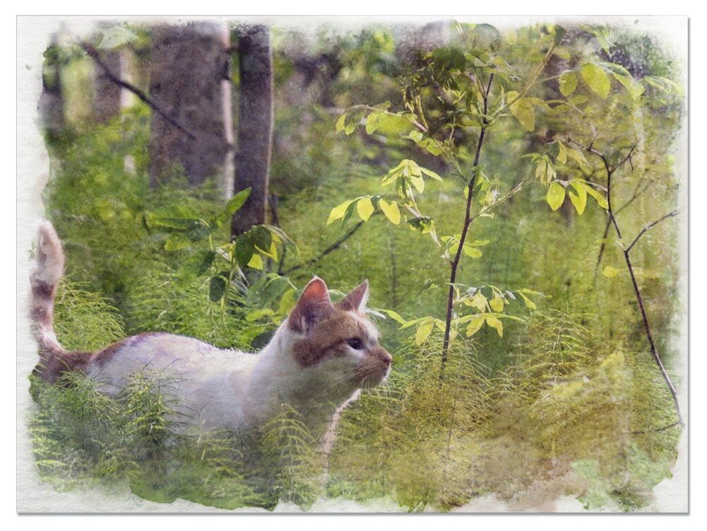 В общем, Муська с нами ходила. Часть пути я её несла, часть она сама рядом бежала. Мы шли-то тогда тоже небыстро, сил особо не было. Бродили, считай, голодные, какие-то корешки откапывали и жевали, траву. Потом уже, к середине лета, ягоды да грибы пошли, попроще стало. Так Муська, представьте, нас подкармливала. То ужей ловила, то птиц каких покрупнее, то лягушек, и нам приносила. Сироня их разделывал, на костре обжаривал кусочками на веточках, мы ели.
