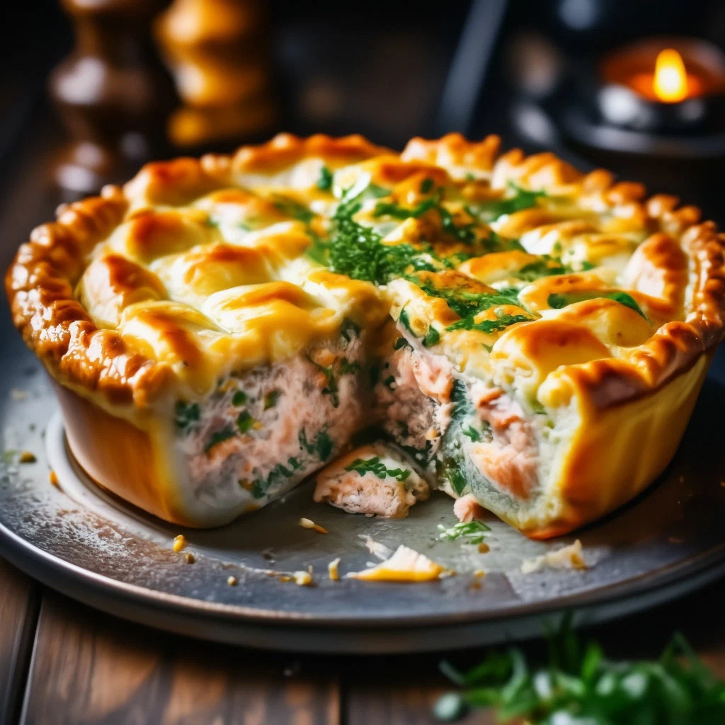 Здравствуйте, дорогие читатели! Сегодня хочу поделиться с Вами рецептом одного из самых любимых блюд в нашей семье - рыбного пирога. Он не только безумно вкусный, но и невероятно ароматный благодаря обилию свежей зелени. Для приготовления пирога нам понадобятся следующие ингредиенты: Подаем пирог горячим, с пылу-жару, разрезав на порционные кусочки. Нежный, сочный лосось, ароматный укроп и петрушка, хрустящий лук - это просто изумительно! Такой пирог станет отличным обедом или ужином для всей семьи, и никто не останется равнодушным.