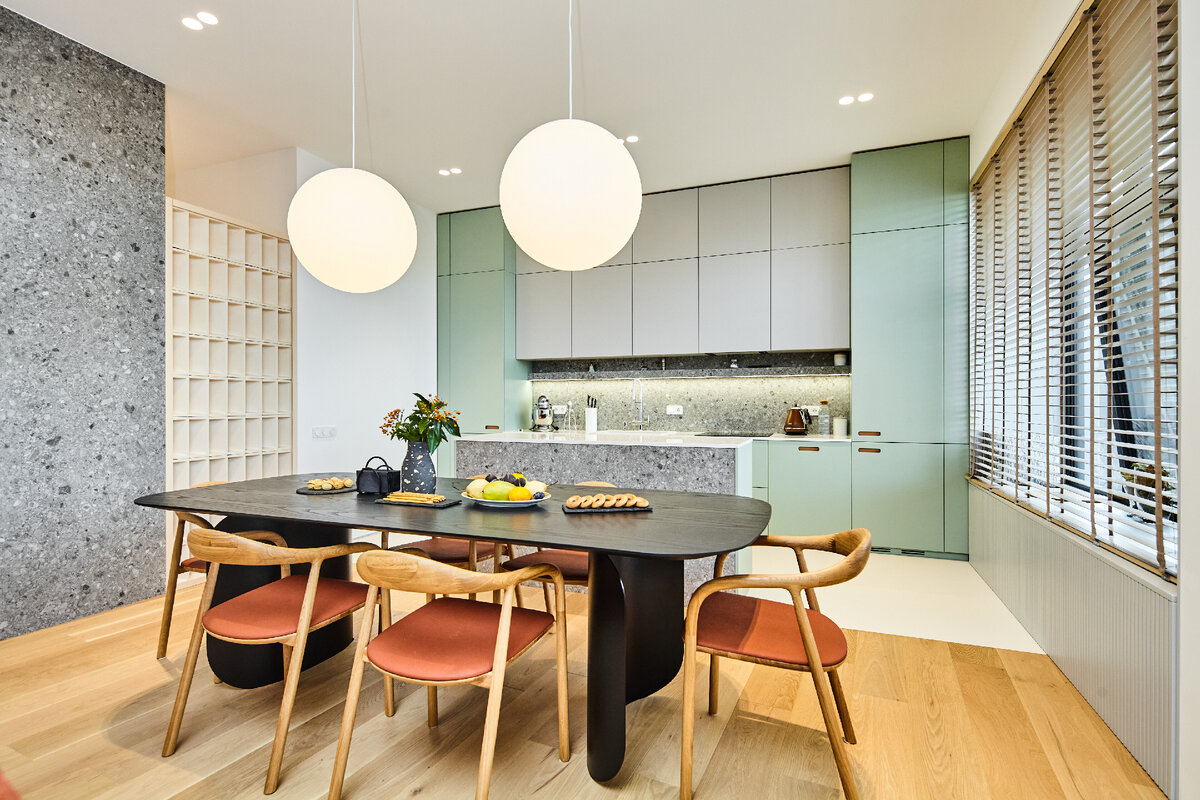 - Использование вертикального пространства - один из самых эффективных способов снять напряжение с ограниченной площади кухни. Подвесные полки и шкафы до потолка позволяют использовать верхние уровни пространства для хранения предметов, которые не используются ежедневно. Это также открывает дополнительное пространство на столешнице и в нижних шкафах, делая кухню более удобной и компактной.