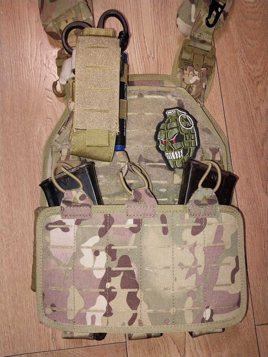 На жилете есть крепление под подсумки, в основном там крепят несколько магазинов и турникет, для основной части подсумков приобретается качественная РПС разгрузочная поясная система с дополнительной кевларовой защитой. Боковые пластины тоже многие снимают, в каммербендах обычно четыре стальных пластины общим весом почти 9 кг. При наличии возможности ставят более легкие пластины, полагаю титановая чешуя от 6б3 тут бы не помешала.