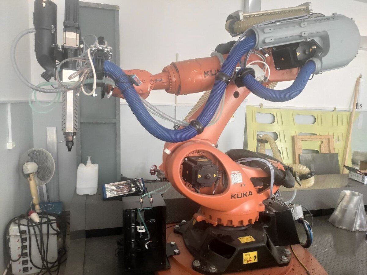 При наличии линейной оси у робота и или конвейерной ленты вместо стола, есть возможность печати очень длинных изделий. По сути, ограничением длины будет выступать помещение, в котором происходит печать.