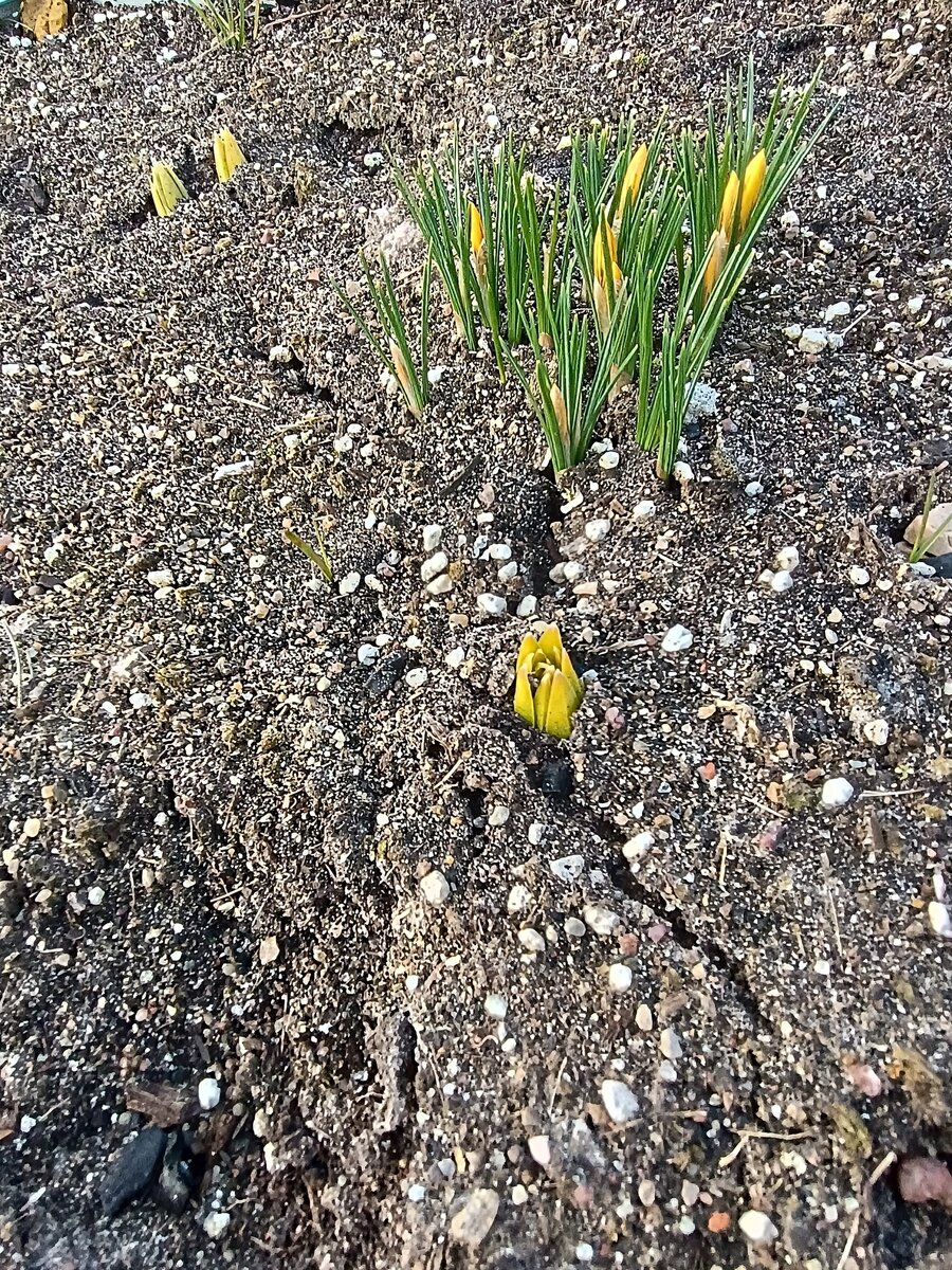 Ну и весна! Ну и дела! А сегодня под окном журавли танцевали и пели, впрочем, последнее не слишком музыкально было. Не сфотографировала -боялась спугнуть движением, так полюбовалась. 18 марта, снег вроде сошел, опять ночью припорошил и так ещё будет и не раз. 16 марта +12, а 17 -го чуть больше нуля днем….. Ну нам не привыкать, каждый год плюс минус так. А что же в саду? А там… Что то спит и не думает даже о побудке, но некоторые особо торопыги уже выскочили. Вот крокусы цветут, а видите пупырочку? Это эремурусы уже торопятся на свет! Или вот… что это? А это алиссумы (на переднем плане мохнатый прострел)! Да-да! Я уж и не говорю про нарциссы и тюльпаны -все присутствуют. Да что там -гиацинты тоже не дремлют! А как вам это? Узнали? Крылотычиночник цветет! Фото 17 марта! Обриетта набрала бутонов Разные камнеломки-очитки Наперстянка красавица. А некоторые с осени красивые! Гаутерия. А рядом малышки азалия почки набирает и собирается с силами кальмия Увы плохо перезимовала эту зиму Эрика, х