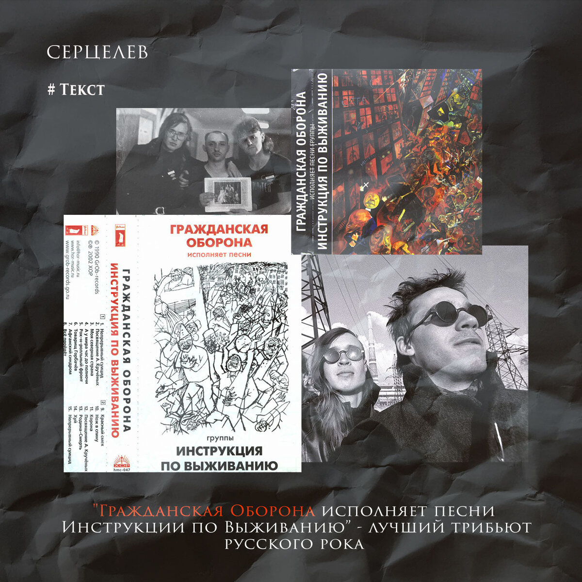 «Гражданская Оборона исполняет песни группы Инструкция по выживанию» в 1990 году задумывался как последний альбом ГО (уже после роспуска группы). Егор собрался на ГрОб Рекордс с Джеффом (он играл не только в ГО, но и был основателем ИпВ) и за несколько дней они записали альбом яростных гаражных постпанк-каверов. Часть песен уже выходила на магнитальбомах «Ночной бит» и «Конфронтация в Москве», но большинство лишь игралась на лайвах. Роман Неумоев, лидер Инструкции, дал добро на проект - в тот момент был разочарован и в группе, и в роке, начал заниматься бизнесом (продавать лес инопланетянам, я не шучу - люди под конец Совка ебнулись и чем только не занимались). Так, что Летов с присущим ему архивариусовским рвением бережно сохранял наследие соратников. Фавориты - «Все пройдет» и «У мира час до полночи» (их ИпВ не реализовала студийно), «Непрерывный суицид» и «Памяти Крученых» (центральные треки), «Родина-смерть», «Корона». Версия «Красного смеха» удачнее на «Прыг-скоке».