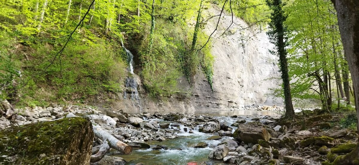 Место притяжения и излюбленная стоянка джиперов. Если вы пешком, на велосипеде, в выходной или праздничный день, не стоит планировать там ночевку. Уединится и отдохнуть вам не дадут. Место очень популярное, рядом с ним не менее популярный водопад Кесух, дороги пригодных для разнообразного внедорожного транспорта, туда часто водят группы однодневок налегке с заброской. На майские, от количества народу, место можно легко спутать с центральным парком. Летом это все конечно пересыхает и представляет из себя весьма жалкое зрелище. Слева от обнажения водпад Чепсинский. Справа Парковый. Координаты места: 44.43953 39.02411 или в менее понятном формате N 44°26′22.18″ E 39°01′25.61″ Как добраться: Автобусы туда не ходят, а на самом деле это места туристические, пригодные для горного велосипеда, скучноваты для пеших групп, и технически просты для четырехколесной внедорожной техники.