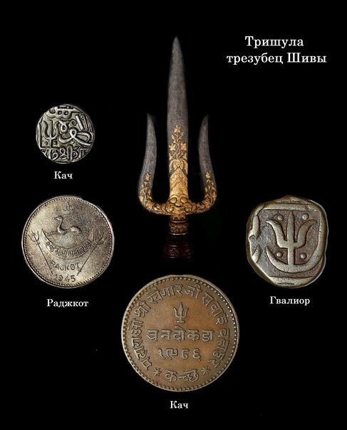 Часто на монетах различных княжеств Индостана можно увидеть изображение трезубца, где то в качестве минтмарки, обозначающей конкретный монетный двор, а где то как самостоятельный символ. И сегодня, в рубрике "Интересно о малоизвестном" мы попробуем выяснить, что же это за трезубец и каково его значение в рамках индийской культуры.