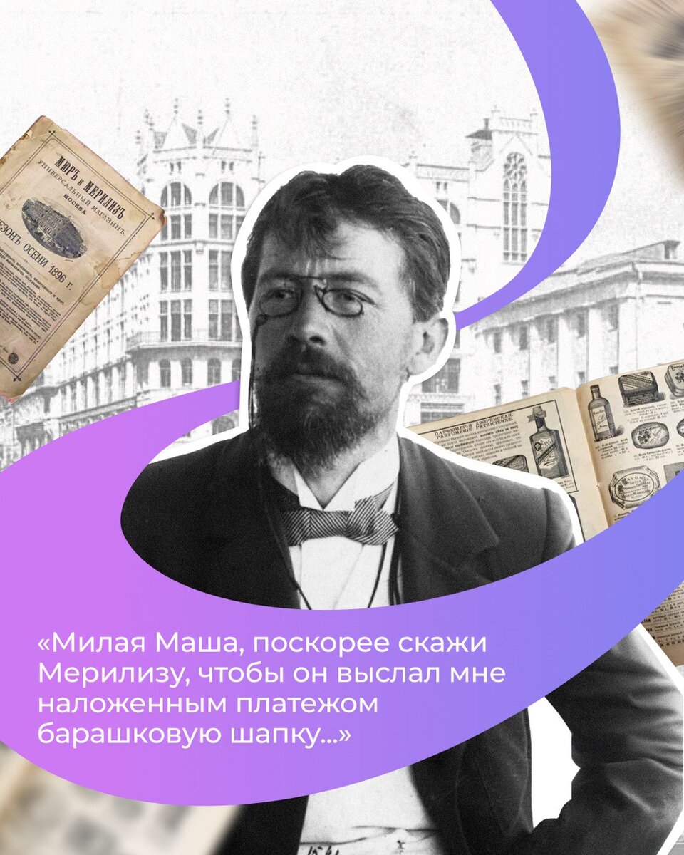 «Милая Маша, — писал Антон Павлович Чехов младшей сестре, — поскорее скажи Мерилизу, чтобы он выслал мне наложенным платежом барашковую шапку, которая у него в осеннем каталоге называется бадейкой (N 216), каракулевой чёрной; выбери мягкую, размер 59 сантиметров... Если фуражки-американки (N 213) теплы, то пусть Мерилиз пришлёт еще и фуражку».