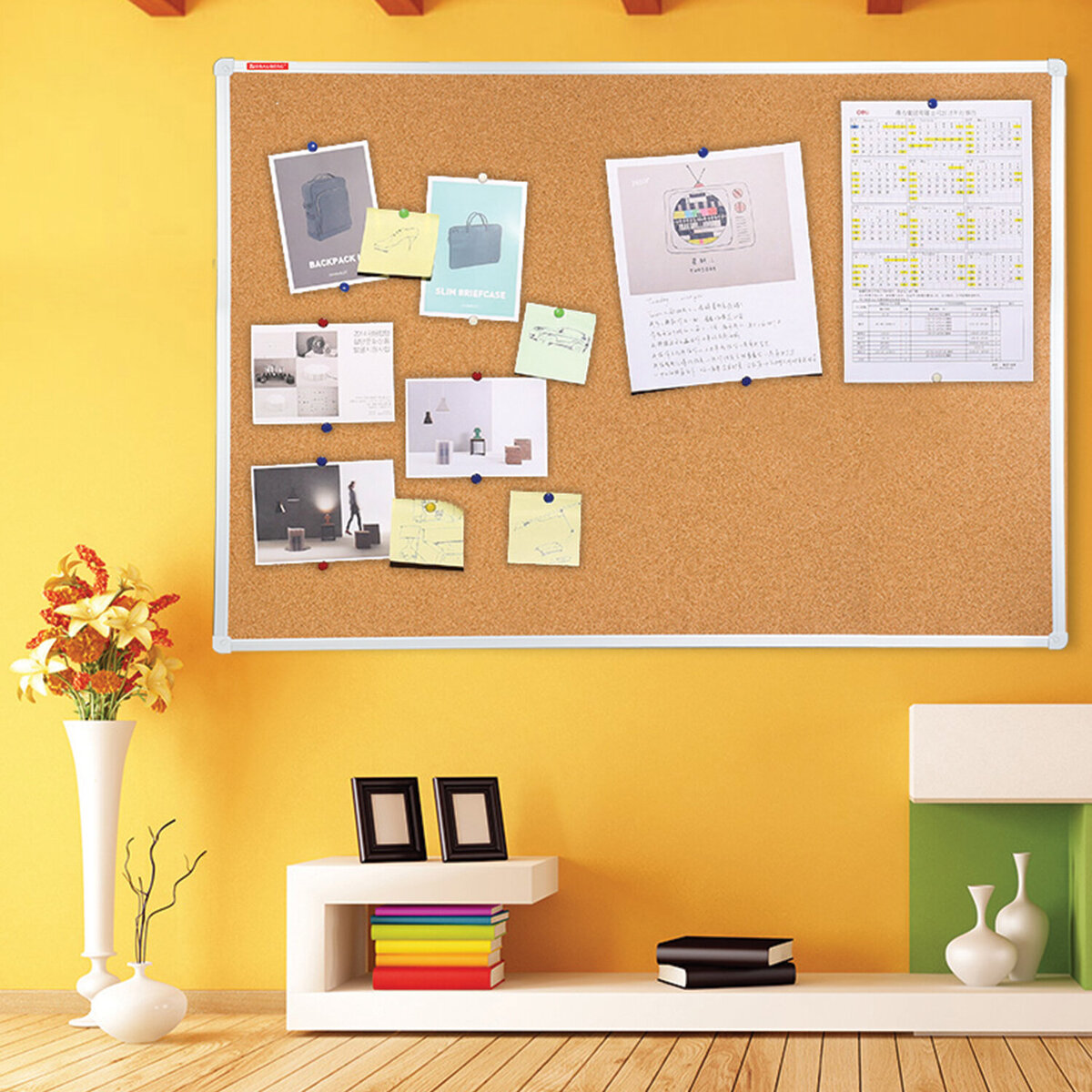 Подойдет для напоминаний или важных моментов. Доска выполнена из крошки коры дуба, либо других деревьев. Это экологичный материал, в который легко втыкаются кнопки,гвоздики или булавки.