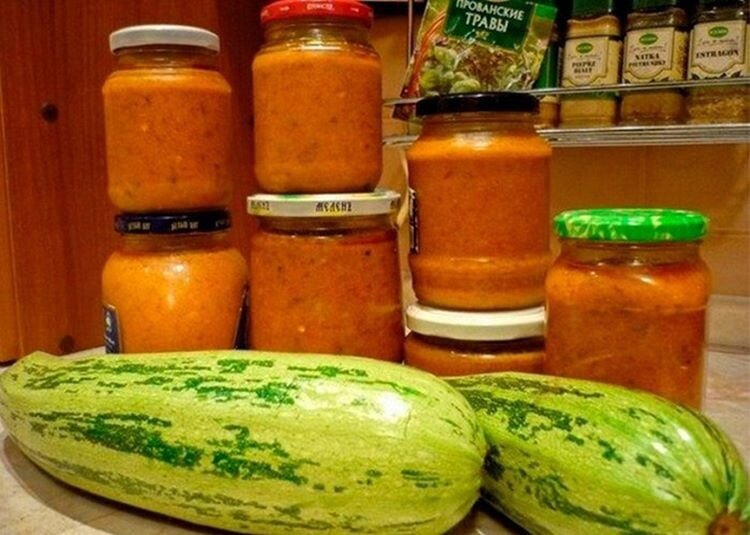 Подпишись_на_мой_ТГ_КАНАЛ кабачки – 2 кг, болгарский перец, моркови, помидоры в количестве 1 кг каждый, 0,5 кг репчатого лука, растительное масло – 0,75 л, 300 г чеснока, сахар – 150 г, 70 г соли, 1 чайная ложка 9%-го уксуса или лимонной кислоты Кабачковую икру лучше готовить вдвоем. Подготовьте все овощи, нарежьте их кусочками для удобства пропускания через мясорубку. Лучше всего делать это в следующей последовательности: сначала лук, затем морковь, перец, помидоры, чеснок, сахар и соль, с интервалом 10 минут. Добавьте кабачки в последнюю очередь. Затем варите все овощи в течение 50-60 минут. За 5-10 минут до окончания варки добавьте растительное масло и уксус. Горячую икру разложите в заранее стерилизованные банки, закатайте их, переверните и укутайте в одеяло до полного остывания.