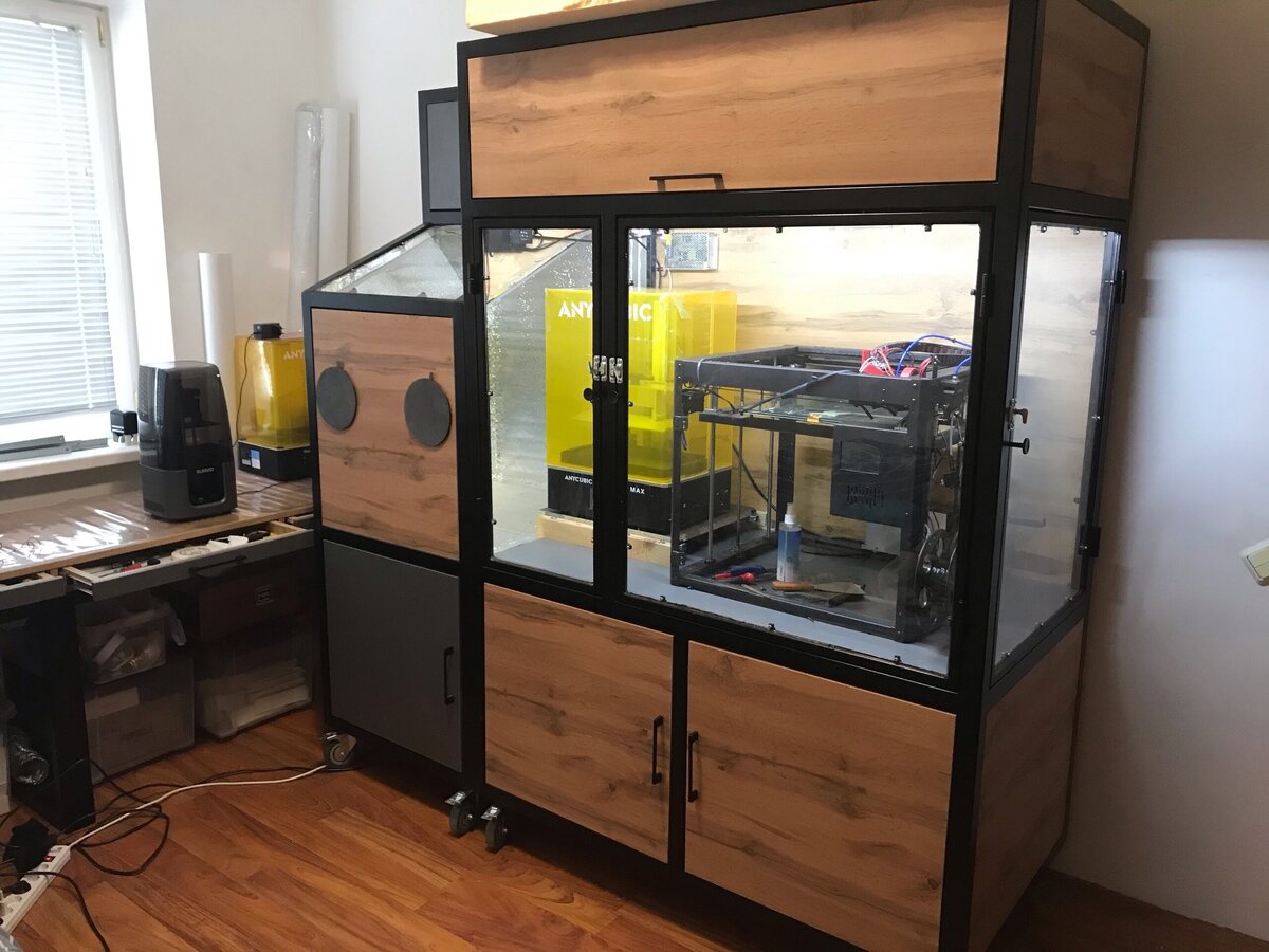 Герметичный шкаф с вытяжкой в стиле лофт для фотополимерной и fdm печати за 1500$