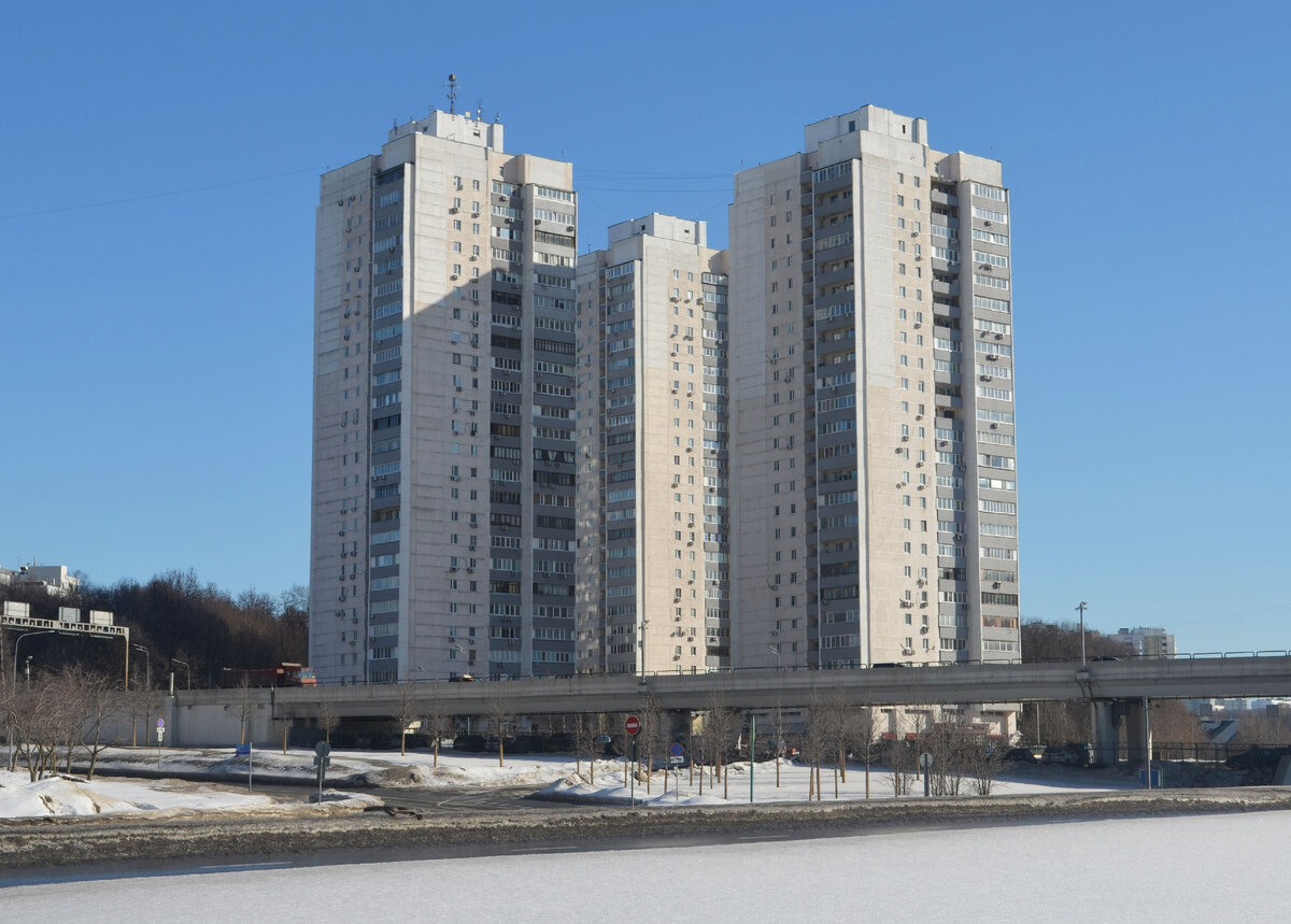 Мы продолжаем исследовать экспериментальные советские высотные здания Москвы, наиболее активное строительство которых пришлось на конец 1970-х – 1980-е годы. В то время слава сталинских высоток уже успела отгреметь, а в городской застройке преобладали сплошь пяти- и девятиэтажки, так что новые башни высотой от 20 этажей по московским меркам считались настоящими небоскребами. Сегодня нам с вами предстоит отправиться на западную окраину столицы, в место пересечения Ленинского проспекта и улицы Островитянова. Здесь, в начале 1990-х, то есть уже в новой России, завершилось строительство трех 25-этажных экспериментальных башен, которое велось еще с конца 1980-х годов. Башни стали настоящей доминантой во всей округе, по сути остаются ей и по сей день, даже несмотря на появление новых высотных зданий на всем протяжении Ленинского проспекта. Они к тому же были едва ли не первыми жилыми зданиями Москвы, которые видели автомобилисты, заезжающие в город по Киевскому шоссе. Что ж, посмотрим поближе на эти яркие и примечательные советско-российские высотки.