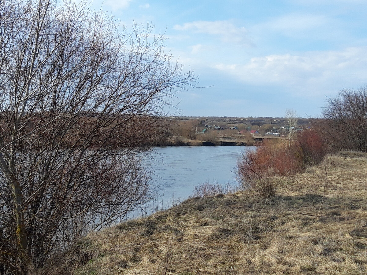 После зимнего бездвижья и передвижений исключительно на машине было радостно. И мы на кураже шагали по лесной поляне, устланной серым ковром прошлогодней травы, ровно уложенной теперь уже сошедшим снегом. Полной грудью мы вдыхали опьяняющий апрельский воздух, пропитанный лесными ароматами и теплотой солнечного дня. Дошли до старицы. Сура уже сбрасывала остатки талой воды, а в лесу половодье еще в силе. В старице зеленоватой мощной струей спешит присоединиться к сурским водам талый снег. Вода поднялась настолько, что разбросала построенную когда-то бобрами плотину, которой мы планировали воспользоваться как переходом. Пришлось приложить некоторые усилия, чтобы обустроить переправу. Несколько минут работы топора и рук – и примитивная переправа из нескольких бревен и веток готова. Водная преграда успешно преодолена.