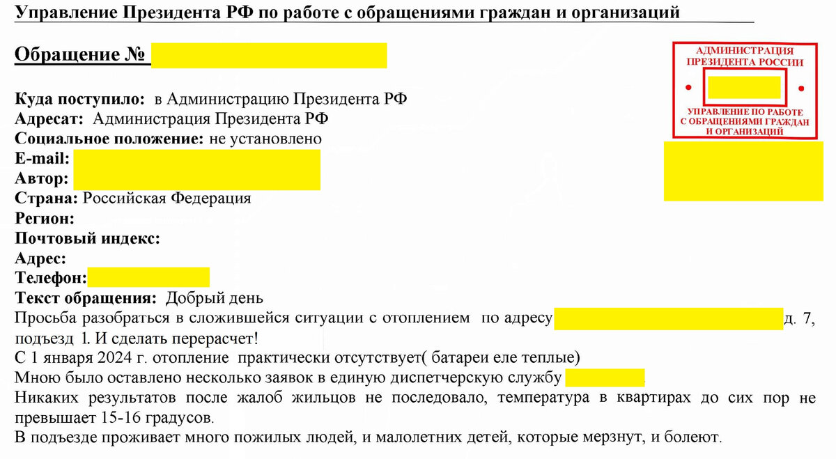 Нарушение качества коммунальных услуг (ресурсов), часть 2: Президент, разберись с отоплением!