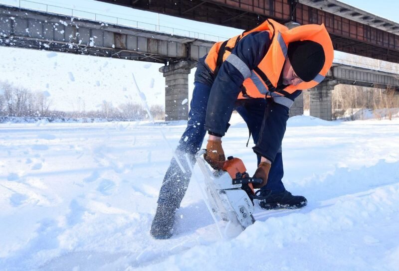 Распиловка необходима для безопасного прохождения весеннего половодья, объясняют в мэрии. Так, 19 марта специалисты МКУ «Комсервис» после инструктажа вышли на лед Сакмары в районе автомобильного моста. Они вооружились спасательными жилетами и бензопилами, чтобы предотвратить ледовые заторы в момент вскрытия реки. – Работы начались с наступлением благоприятных погодных условий. Распиливаем лед квадратами вдоль по течению реки на расстоянии около 10 метров от берега. Сейчас толщина льда ориентировочно составляет от 50 до 100 сантиметров в разных местах, – пояснил начальник отдела по делам ГО и ЧС по Северному округу Оренбурга Виталий Казаков. Добавим, что вскрытие Урала и Сакмары в Оренбурге ожидают во второй половине апреля. Данные замеров толщины снега и глубины промерзания почвы дают основание предполагать высокий уровень подъема рек. Есть риски подтопления территорий, расположенных в пойме рек. В связи с неблагоприятным прогнозом на весеннее половодье в областном центре усилили работ