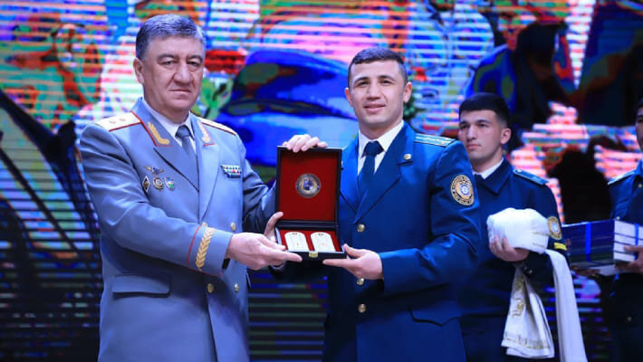 Глава МВД Узбекистана досрочно присвоил профессиональному боксёру Исраилу Мадримову, завоевавший чемпионский титул WBA, воинское звание майора. Напомним, 8 марта на вечере профессионального бокса, прошедшем в Эр-Рияде, Исраил Мадримов завоевал чемпионский пояс Всемирной боксерской ассоциации (WBA) техническим нокаутом российского спортсмена. Профессиональный боксер получил погоны майора из рук министра внутренних дел Пулата Бобожонова во время церемонии награждения сотрудников ОВД во Дворце культуры МВД. «На церемонии награждения также был отмечен новый чемпион мира по профессиональному боксу Исраил Мадримов, вновь представивший Узбекистан миру и завоевавший пояс WBA в первом среднем весе, которому министр внутренних дел досрочно присвоил специальное звание майора», – говорится в сообщении МВД. Ранее мы писали о том, что Мадримов получил президентский подарок — автомобиль Tahoe, цена которого составляет 1,04 млрд сумов.