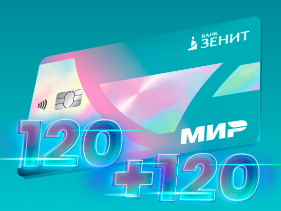 Банк "Зенит" — крупный российский универсальный коммерческий банк. Банк предоставляет широкий спектр услуг как физическим, так и юридическим лицам. Розничные услуги включают в себя ипотечное, потребительское и автокредитование, открытие вкладов, оформление дебетовых и кредитных карт, аренду сейфовых ячеек и другие. Корпоративным клиентам доступны расчётно-кассовое обслуживание (РКО), кредитование, эквайринг, участие в зарплатном проекте и другие услуги. Также "Зенит" занимает лидирующие позиции на рынках инвестиционных услуг и частных инвестиций (Private Banking). ПАО Банк ЗЕНИТ. Лицензия № 3255 от 16.12.2014 Россия, 117638, г. Москва, Одесская ул., д.2. На сайте банка есть горячая линия: 8 (800) 500-66-77, где можно получить ответы по всем банковским продуктам. Банк выпустил бесплатную кредитную карту c двумя отдельными льготными периодами "120 + 120 дней без %", ниже мы расскажем про неё более подробно. Условия кредитки "120 + 120 дней без %" банка Зенит Кредитный лимит - до 2 00