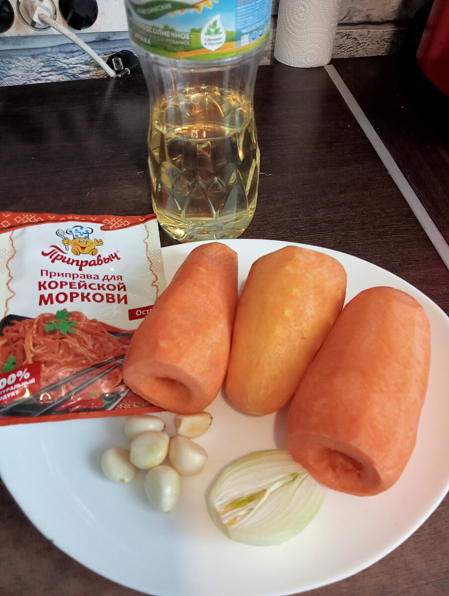Здравствуйте! Зимой лучше всего готовить салаты из корнеплодов. Сезонные овощи, и цена не велика и витаминов кладезь. Один из любимых салатов-морковь по-корейски. Но у меня есть свой секретный ингредиент, который возвращает меня в детство. Но об этом позже. Сейчас весь процесс пошагово. Для этого простого, но невероятно вкусного салата мне понадобятся: Первым делом натëрла морковь на специальной тëрке Добавила соль, сахар, уксус и приправу. Приправу лишь пол пакетика, тк дети едят салат, я себе отдельно шрирачу добавляю (люблю острое 🌶). Чуток пожамкала морковь, чтобы стала упругой. Выдавила чеснок и параллельно разогреваю масло с луком. Но лук никогда не выкидываю, он идёт в морковь. Вот жареный лук и придаёт салату тот самый вкус. Можно лук и выкинуть, масло уже приобрело вкус, но зачем? Выливаю кипящее масло прям на чеснок. И всё тщательно перемешиваю. Осталось подождать пару часов и наслаждаться вкусом. Из детства:пюре картофельное, сосиска и морковча, именно так называли этот