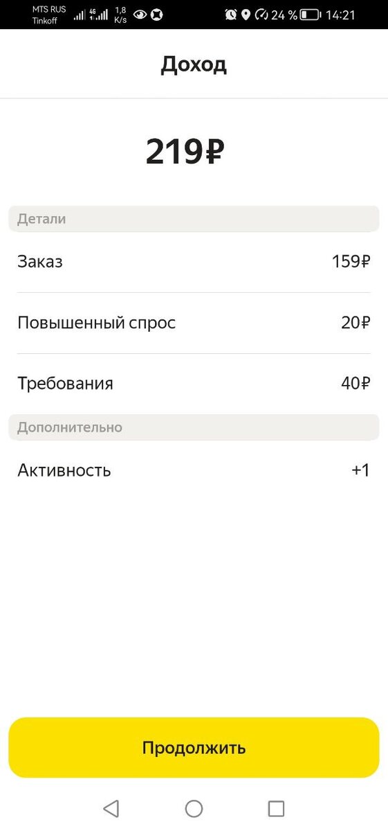 Все цифры по расходам и доходам ниже. Вот и я решил на межвахте устроиться в доставку. Выбрал самую популярную - желтого цвета. Сразу решил купить термокороб, чтобы повысить статус и можно было развозить еще и еду. Яндекс утверждает что наличие термокороба увеличит мой доход на 20%. Чтож посмотрим. Вышел на линию только после часу дня - это была первая ошибка, спрос низкий, коэффициент соответственно тоже низкий. Очень волновался что перепутаю кнопки куда что нажимать. После того как нажал "Принимать заказы" - началось томительное ожидание. Ждал примерно 5 минут и прилетел первый заказ, надо было заехать на одну точку, забрать пакет и привезти на другую точку в какую-то организацию, которая находится в промзоне. Это была вторая ошибка - ехать в промзону! Выполнил заказ и пришли первый деньги: И после выполнения этого заказа, оказавшись в промзоне - я прилип на полчаса. Подождав это время я плюнул, снялся с линии и поехал по своим делам. Примерно через час я был в жилом районе и снова