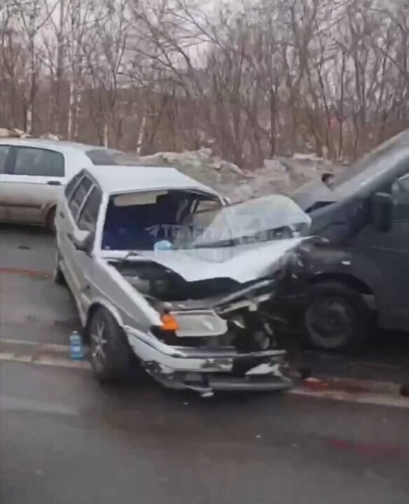 Удар был такой силы, что иномарку откинуло на обочину, а грузовичок и отечественный автомобиль развернуло поперек дороги. Судя по кадрам с видео, размещенного в соцсетях, основной удар пришелся на водительскую сторону «Лады» — у авто разбита вся передняя часть кузова, дверь вмята в салон, искорежен капот.