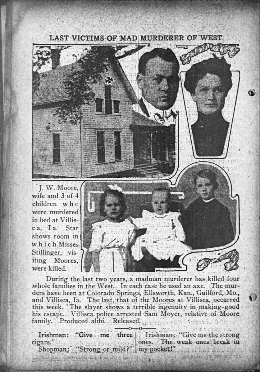 Поместье в Виллиске (штат Айова) — излюбленное место охотников за привидениями и любителей ужасов. В 1912 году здесь произошло массовое убийство: неизвестные зарубили топором шестерых детей и двух взрослых. До сих пор неизвестно, что именно произошло в ту ночь. В 1994 году дом приобрели новые хозяева, и в результате реставрации поместье приобрело вид того самого места трагедии 1912 года. Так дом превратили в туристическую достопримечательность, и теперь здесь можно остановиться на ночь за $428. Посетители «отеля» часто подмечают, что в доме творится всякая чертовщина, например, ходит привидение с топором и раздаются детские крики. Как сообщает издание VICE, ноябрь 2014 года для хозяев дома выдался особенно мрачным. Здесь с друзьями остановился Роберт Стивен Лорсен-младший, которого позже товарищи нашли с ножевым ранением грудной клетки — предположительно нанесенным им самим. Друзья вызвали службу спасения, и молодого человека на вертолете доставили в больницу. Как заявили потом в по