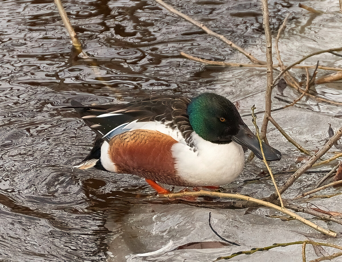В Петербурге резко прибавилось птиц. На фото редкость — хищная утка с сотнями «зубов» и странным клювом Перелётные птицы начинают всё активнее возвращаться в наши края. На месяц раньше обычного прилетел самец широконоски — хищной утки с сотнями «зубов», рассказал «Фонтанке» фотограф-натуралист Александр Спиридонов. Широконоски — одни из наиболее плотоядных речных уток. Основу их питания составляют крохотные рачки, которых птицы процеживают с помощью языка и пластинок своего клюва. Клюв широконоски напоминает лопату, поэтому на английском она называется northern shoveler, от слова shovel — лопата, поясняет канал «Ушами филина». «Селезень широконоски уже в брачном наряде, шныряет в толпе уточек в Средней Невке», — пишет сам фотограф в сообществе «Птицы СПб и России». Эти утки в Петербург заглядывают пролётом, а гнездятся в Ленинградской области. Тем не менее просмотреть на них близко, а уж тем более на самца в брачном наряде — большая редкость и удача. Самка и самец сильно отличаются дру