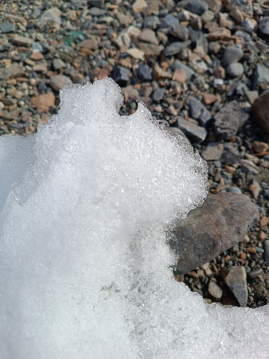 В природе все готовится к приходу весны. И хорошее веселое настроение у людей и чириканье птиц и рев котов и кошек. На Катуни началось таяние льда и появились полыньи. Снег стал ноздреватым и рыхлым. Лед у берегов стал активно подтаивать. И еще прошлогодняя трава серо-желтым оттенком подкрашивает темные весенние воды Катуни. И выросший из трещины в скале росток сосны надеется в наступившем году еще подрасти. И его более старшие собратья собрались у берега в кучу ожидая прихода весны. А выброшенные прошлогодним половодьем бревна, ожидают тоже нового половодья, чтобы оно понесло их дальше по течению и воле реки. А старый перевитый ствол дерева знает, что возможно и не заденет новое половодье то место, где они сейчас лежат.