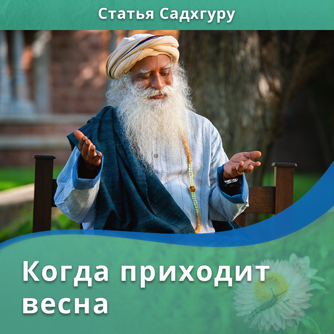 В этой статье Садхгуру рассказывает о первом дне весны и о том, какие возможности открывает это время года для духовных искателей. «Сегодняшний день знаменует весеннее равноденствие. С наступлением весны, все живое расцветает, потому что даже насекомое понимает: “Это время для меня”». Садхгуру напоминает нам: «Для духовных искателей наступит великая весна в ближайшие годы; постарайтесь, чтобы она наступила и для вас». Наслаждайтесь! Сегодняшний день знаменует весеннее равноденствие. С наступлением весны, все живое расцветает, потому что даже насекомое понимает: «Это время для меня». Садхгуру напоминает нам: «Для духовных искателей наступит великая весна в ближайшие годы; постарайтесь, чтобы она наступила и для вас». Ходите и сидите таким образом, чтобы даже трава, на которую вы сели, благословляла вас, а не проклинала, потому что вы на ней сидите. Есть определенный способ добиться этого. «Как Садхгуру? Скажите, как трава может благословить меня? Мне нужно ее съесть?» Поймите, что в кос