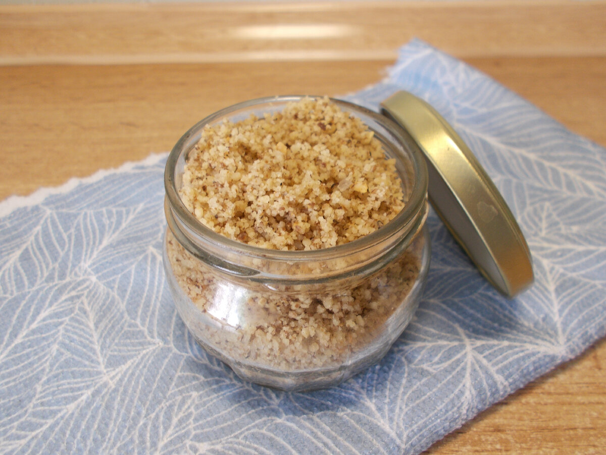 Вот и наступил Великий пост. Блюда на столе стали постные и простые. Но даже самое постное и простое блюдо можно подать так, что это будет вкусно и аппетитно. Для улучшения вкуса постных блюд предлагаю приготовить посыпку из грецких орехов. Переберите грецкие орехи, удали все подпорченные орехи и перегородки. Выложите орехи в измельчитель с установленной насадкой нож. Измельчите орехи до состояния средней крошки. Совсем в муку орехи измельчать не надо. Добавьте сушенный чеснок и молотый кориандр. Еще раз все смешайте. Храните посыпку в стеклянной баночке, в холодильнике. Заправить этой посыпкой можно любое блюдо - вареные макароны, картошка вареная или тушеная с овощами, любая постная (не сладкая) каша, постный суп. ингредиенты: грецкие орехи - 1 ст. сушеный чеснок - 0.5 ч.л. молотый кориандр - 0.5 ч.л.
