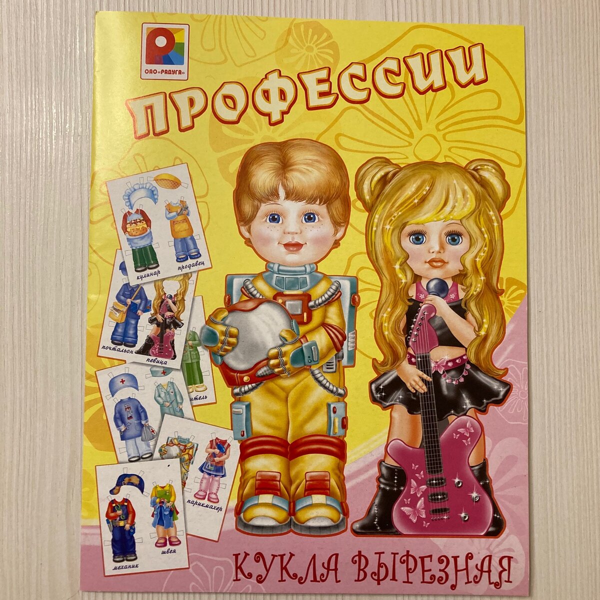 Всем добрый день! Сегодня хочу показать вам детский, игровой набор бумажных кукол под названием "Профессии", выпущенный издательством "Радуга". В набор входят две куклы, мальчик и девочка: Куколки очень симпатичные, с выразительными личиками, глазастенькие такие, с пухлыми губками, а мальчик ко всему прочему еще и с веснушками. Давайте же посмотрим, в представителей каких профессий их предлагается наряжать. Тут надо признаться, что особой фантазии авторы набора не продемонстрировали, профессии в наборе довольно обыденные: например, строитель и почтальон у мальчика и швея и продавщица у девочки. Я, пожалуй, даже писать много не буду, просто выложу фото в галереи. Вот костюмы мальчика: А вот - девочки: В целом, для игрового набора эти куклы очень даже неплохи. Профессии легко идентифицируются, костюмы яркие, куклам подходят и хорошо на них держатся. Для ребенка самое то. А вы как считаете? P.S. Гораздо более интересный набор с профессиями я показывала здесь: