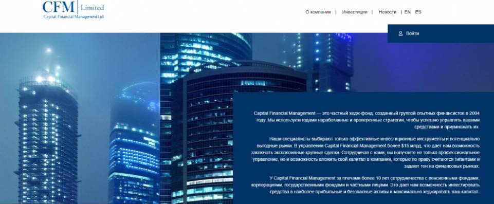 https://t.me/ScamRating В настоящее время, в онлайн-сфере деятельность ведут не только надежные инвестиционные организации, но и недобросовестные проекты, которые нацелены на мошенничество и кражу средств у своих клиентов. Одной из таких компаний является Capital Financial Management, именно о ней мы расскажем более подробно в данной статье. В Интернете можно найти множество негативных отзывов о инвестиционной компании Capitalfinancial. Например, на портале financeotzyvy.com доступно множество историй, в которых люди делятся своим неудачным опытом сотрудничества с данной компанией, который привел к значительным потерям вложенных средств. Похоже, проект Capital Financial Management был организован профессиональными мошенниками, поскольку используема