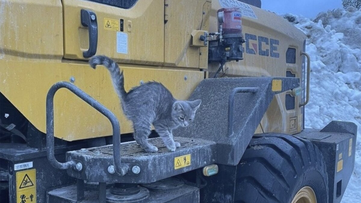 Котенок устроился на работу и уехал на вахту вместе с хозяином