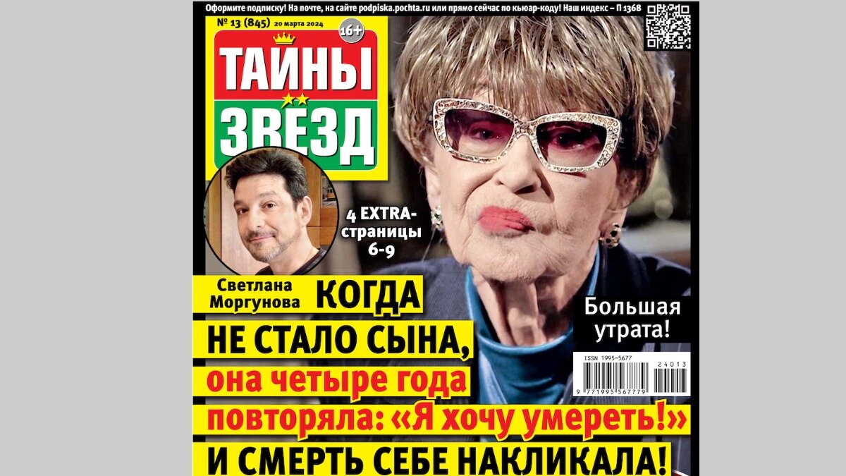 Свежий выпуск уже в продаже. Светлана Моргунова накликала себе смерть. Бывшей жене Андрей Аршавина вернули сгнивший после сифилиса нос. Алла Пугачева грубо обратилась к Стасу Михайлову. Анастасия Волочкова призналась, что у нее был секс за деньги.