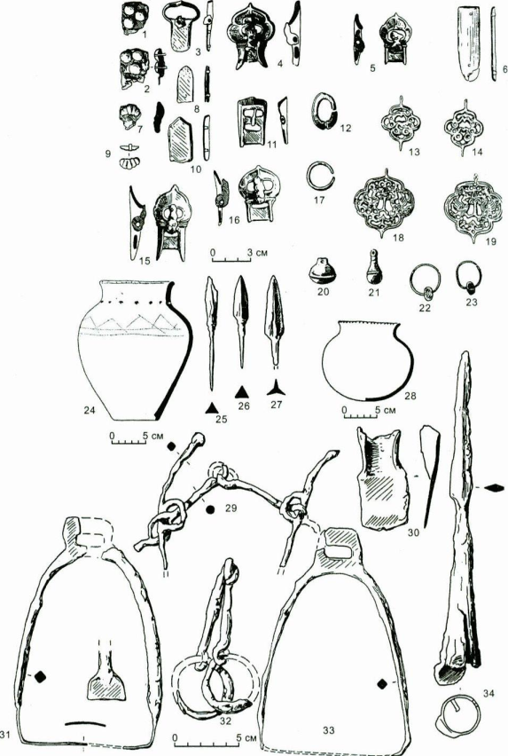 Отчасти синхронно с верхнеобцами, а с начала 2-го тысячелетия н.э. все шире и шире, на территории Болотнинского района проживали носители сросткинской культуры.
