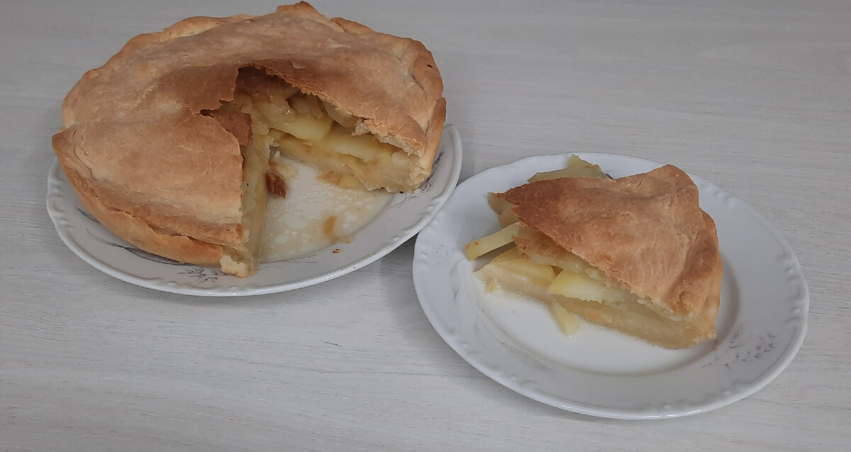 Пирог с картошкой🥧 🌾Пшеничная мука 250 гр. 🧈Масло сливочное 120 гр. 🥛Сметана 3 ст.л. 🧂Соль 0.5 ч.л. для теста, 1 ч.л. для начинки 🥔Картофель 0.5 кг. 🧅Лук 1 шт. 🍶Масло растительное 1 ст.л. Тесто: Масло растопить на водяной бане или в микроволновке. Добавить сметану, соль, просеяную муку и вымешать тесто. Возможно, муки понадобится больше, всё зависит от качества муки. Тесто должно получиться мягким и эластичным, не прилипающим к рукам и поверхности сола. Оставляем тесто отдыхать, накрыв его пищевой пленкой. Начинка: Лук нарезать полукольцами и обжарить на сковороде до золотистого цвета. Картофель нарезать тонкими кружочками. Сборка пирога: ⅔ теста раскатываем по форме, в которой будете выпекать, диаметром чуть больше диаметра самой формы. Форму для выпечки застилаем пергаментом и выкладываем в неё тесто, формируя бортики. Выкладываем равномерно картофель, посыпая каждый слой специями. Сверху выкладываем лук. Оставшееся тесто раскатывпем по диаметру формы для запекания. На