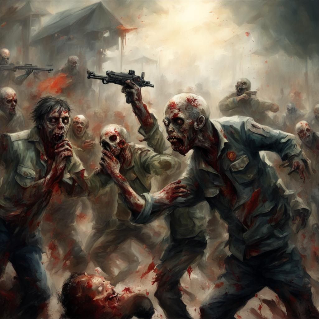 Мы с Вадимом скатились вниз по лестнице и вышли из подъезда во двор. Если не считать несколько порядочных трупов, двор был пуст. Даже машин не было. Дезертиров загробного мира также не наблюдалось. Тогда мы побрели в сторону центра города. Везде лазили собаки, кошки; но больше всего было крыс. В войну с зомби животных в городе не было. Либо они прятались, либо были разорваны зомби. Нынешние жмурики вряд ли были приверженцами зеленых, но животных не трогали. Зато терзали до смерти людей. На трупы слетались крысы и вороны. В свою очередь им объявили войну кошки и собаки, объединившиеся в своих усилиях. Видно и кошки, и собаки здорово растерялись от такой наглости крыс и ворон. Крысы, кстати, в свою очередь не брезговали нападать на одиноких котов или собак… - И это за два дня? – не верил я своим глазам. - И это за два дня. – отвечал Вадим. Мы, наверное, блуждали больше часа и уже собрались идти домой к нашим женам, когда где-то рядом застрекотали автоматы. Мы оба кинулись за ларек и на б