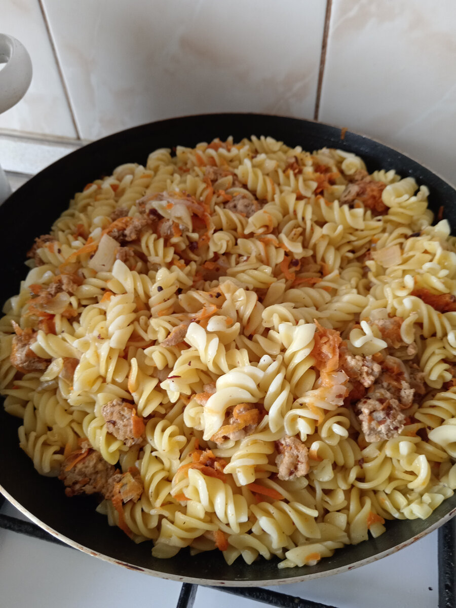 Едят даже дети и просят добавку. Рецепт настолько прост, что больше некуда. Причем, блюдо не только легко приготовить, но продукты, входящие в состав весьма и весьма бюджетны. Итак, потребуется: Сначала я кладу фарш на сковородку, он тушится на очень медленном огне, под крышкой. В это время нужно почистить и натереть морковь на крупной терке, нарезать лук. Высыпаем все в фарш, чуть посолить и накрыть крышкой. Тушу на медленном огне, помешивая каждые 5 минут. Пока тушится фарш, отварить макароны. Это также элементарно. Налить воды, посолить (обязательно, так как подсоленная вода закипает быстрее), когда вода закипит, опускаем макароны, перемешиваем. Когда вода закипит, помешать, закрыть крышкой и выключить огонь. Подождите 5-7 минут, так макароны не разварятся, но будут готовы. Промыть, откинуть на дуршлаг и добавить в фарш. Все перемешать, тушить 5-6 минут на мелком огне.