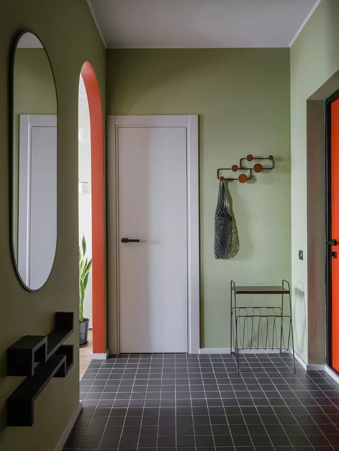 Небольшая квартира была приобретена семейной парой с целью инвестиции, то есть в дальнейшем они планируют сдавать квартиру в долгосрочную аренду. А первые два-три месяца в ней будет жить мама супруга, которая положительно воспринимает яркие цвета и интересные динамичные интерьеры, именно такой дизайн, предполагали видеть в этом помещении заказчики. Для того, чтобы создать функциональное, комфортное жилье пара обратилась к дизайнеру Екатерине Плаковой. После перепланировки квартира получилось более эргономичной и удобной: на месте кухни организовали отдельную полноценную спальню. На площади коридора оформили кухню, при этом прихожая зона стала немного меньше, но зато получилась вполне просторная кухня-гостиная с обеденной зоной и местом отдыха у окна. Несмотря на то, что кухонный гарнитур установили без верхнего ряда, вся необходимая техника уместилась в нижних шкафах, там же есть и места хранения для посуды. Этого будет вполне достаточно для 1-2-х человек. При оформлении интерьера исп