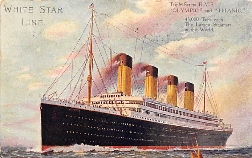 В первом же рейсе «Титаник» потерпел крушение: в ночь с 14 на 15 апреля 1912 года столкнулся с айсбергом и затонул в 600 милях от Ньюфаундленда. Айсберг повредил пять отсеков, корабль получил несколько разных по размеру пробоин на длину 90 метров. В катастрофе погибли по меньшей мере 1496 человек при 712 выживших. 13 апреля 1912 года «Олимпик» покинул Нью-Йорк. Капитаном был Герберт Джеймс Хаддок, который вступил в должность после того, как Смита перевели на «Титаник». Только после полуночи радист «Олимпика» получил сообщение о том, что «Титаник» повреждён. Не зная, насколько серьёзной была ситуация, радист спросил «Титаник», стоит ли «Олимпику» идти к «Титанику», или он может сам дойти. Ответ был коротким: «Мы сажаем женщин в лодки». Радист немедленно ответил, что они идут на помощь полным ходом, однако «Олимпик» был слишком далеко от тонущего брата-близнеца. К «Титанику» ближе всего были три судна: «Калифорниэн» компании «Лиланд Лайн», «Карпатия» «Кунард Лайн» и «Маунт Темпл» «Канади