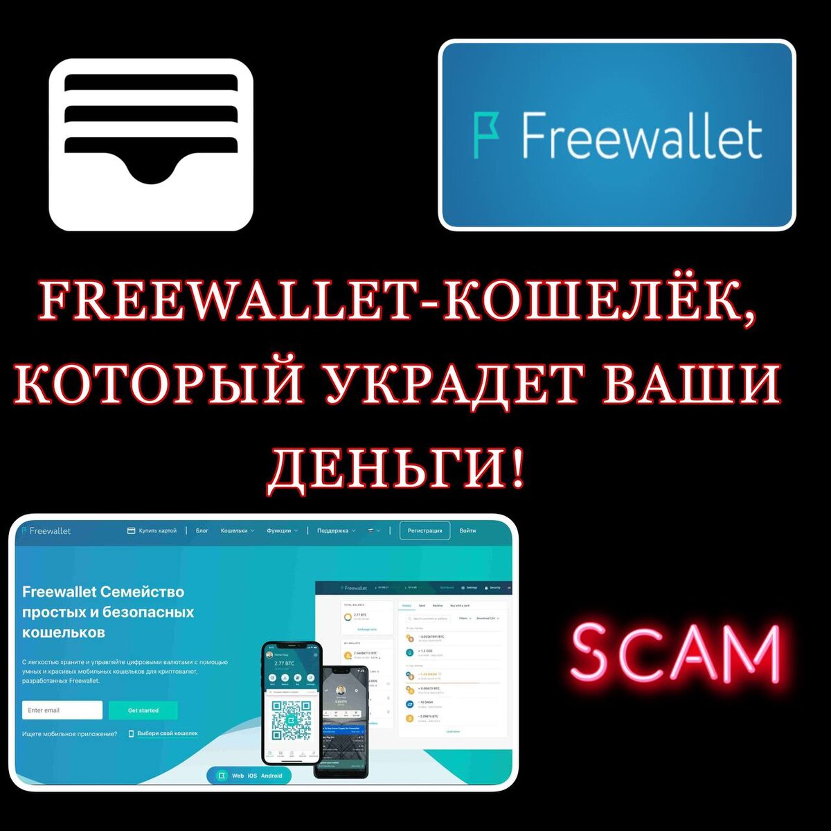 По данным портала CryptoRu, в 2024 году пользователи могли скачать более 400 разных криптокошельков. Единого мнения, какое приложение лучше, нет. И мы не собираемся оценивать или сравнивать разные сервисы. Главное, что нужно знать. Среди 400 приложений для хранения и отправки криптовалют есть откровенные мошенники - кошелек Freewallet. Этот проект создан для кражи монет и уже нанес ущерб тысячам пользователей! Что такое кошелек Freewallet Все приложения для хранения, получения и отправки криптовалют можно разделить на несколько видов: Кошелек Freewallet по словам разработчиков - самый надежный и удобный из числа кастодиальных приложений. При этом монеты клиентов, опять же по словам основателей, находятся в холодном хранилище, что исключает риск их кражи. Но это лишь маркетинговый ход. Freewallet кошелек - мошенники. Для доказательства посмотрите, что пишут о сервисе пострадавшие от этого скама. Отзывы о кошельке Freewallet Прежде всего стоит отметить, что искать мнения реальных клиенто