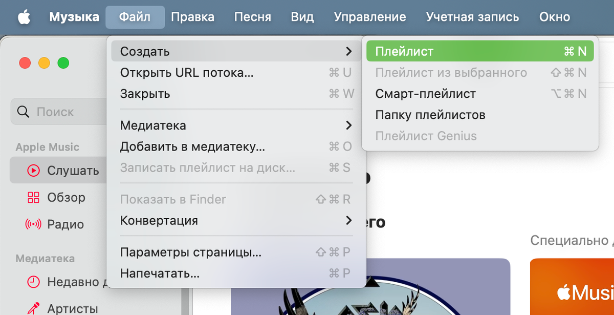 Добавляем плейлист для файлов, из которых мы будет создавать рингтоны (Файл → Создать → Плейлист).