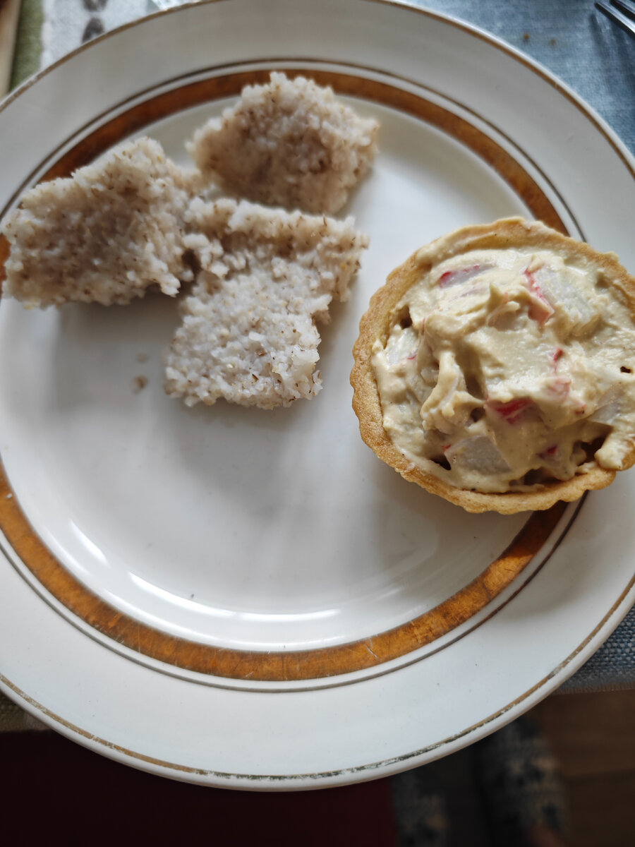 Приветствую, уважаемые читатели! По ощущениям сегодня немного голоднее. Возможно , потому что весь день дома и мысли больше о еде были. Или, так сказывается вчерашний дефицит. Завтрак. К первому приёму пищи супруг отнёсся творчески Ячневая каша, в тарталетке хумус с крабовыми палочками, бутерброд с паштетом из красной фасоли, бутерброд с арахисовой пастой, чай черный без сахара (выпила сразу 500 мл). Обед. Салат сегодня делать не стала - огурцы закончились, но нарезала помидор и редиску, грибной суп, бутерброд с арахисовой пастой и съела жимолость (вчера часть оставила в холодильнике, когда компот варила), компот. Перекус. Кусочек белого хлеба, мед-суфле и компот. Ужин. Селёдка с луком и черным хлебом, компот. Уже ближе к дневной норме калорий. По БЖУ баланс очень сложно соблюдать - белка точно будет дефицит. Но, 36 для меня это ещё очень неплохой результат. Всем здоровья! До новых встреч!