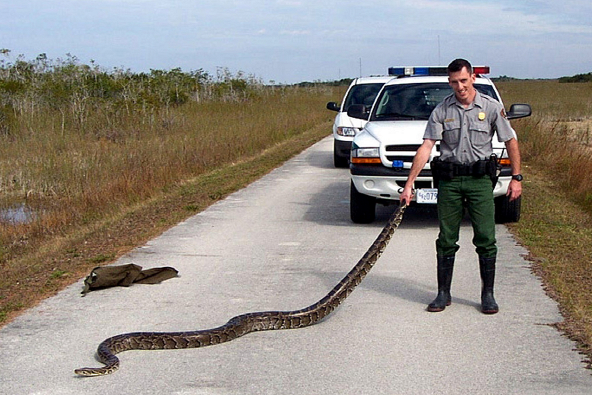 Специалисты занимаются поиском инвазивных видов змей, чтобы вывезти их в родную среду обитания. Биологи обнаружили во Флориде «питонового короля». Это оказался клубок из 11 сцепленных между собой змей, общим весом более 26 кг. Клубок змей нашли в феврале рядом с городом Неаполь, сообщает The Hill. Их удалось обнаружить во время поисков инвазивных видов рептилий, чтобы вывезти их за пределы региона до того, как самки получат возможность отложить яйца. «Их нельзя поместить в зоопарки и отправить обратно в Юго-Восточную Азию», - рассказал биолог Ян Бартошек. По словам биолога, питоны попали во Флориду путем контрабанды. В результате с 2013 года служащие департамента природы Юго-Западной Флориды поймали и вывезли из региона питонов общим весом более 11 тонн. Ранее ученые из университета Нью-Мексико Хайлендс в течение двух десятков лет наблюдали за одними из самых крупных змей на планете – зелеными анакондами. И выяснили, что это не один вид, а два очень разных подвида. Также исследователи