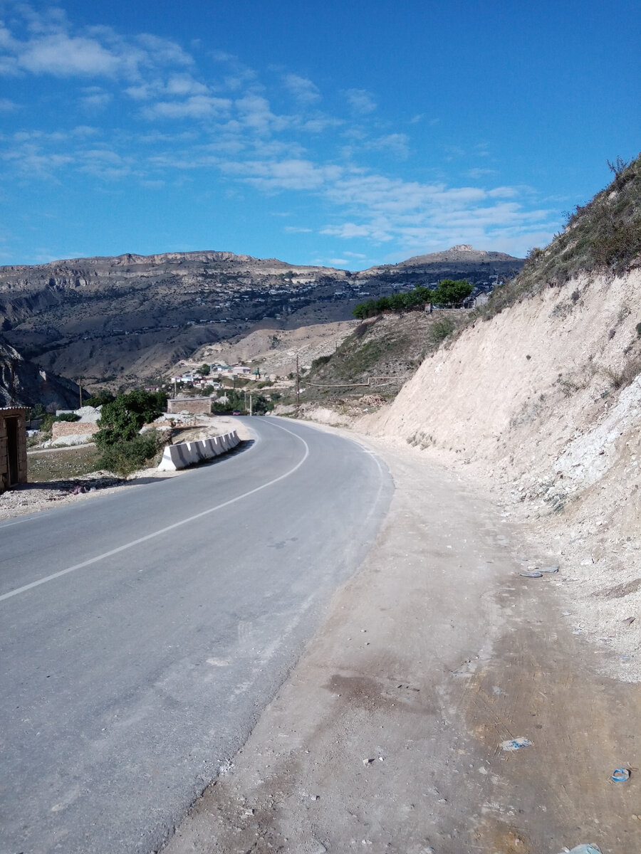 Прошла ночь возле горной реки. Горная река шумит так как будто поезд едет рядом с палаткой. К этому надо привыкнуть. Вот она утро нового дня. Завтрак и снова в путь. Сегодня надо преодолеть перевал 2200м. Погода хорошая. Солнечно тепло. Встречающиеся местные жители говорят, что в горах ночью мороз. Так что надо успеть перевалить и спуститься. У меня не так много одежды как в Киргизии. Проехал село Кумух еще несколько сел в одном из них плотно пообедал. Асфальтовая дорога закончилась. До перевала 50км. Доехал до села Кули Село очень длинное. Едешь через него с постоянным набором высоты. В селе молодой человек предложил зайти выпить чаю. От обеда я отказался, а вот чаю выпил с удовольствием. С вареньем конфетами. За разговором выяснилось, что брат хозяйки дома за перевалом пасет скот. Живет в вагончике. Поблагодарив хозяев, они мне еще домашнего компота с собой дали очень вкусного, продолжил подъем. Время поджимает. Силы на исходе, а еще далеко до перевала. Тут выясняется , что спускает