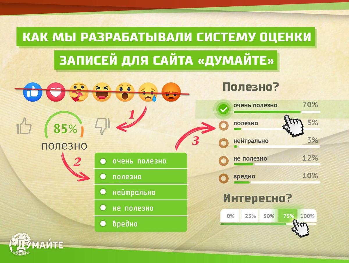 Наши постоянные читатели уже знают, что одним из главных новшеств разрабатываемой блог-платформы является уникальная и, на наш взгляд, более правильная система оценки контента по критериям «Полезности» и «Интересности», которую мы предлагаем на замену привычным всем «лайкам». Идея нового механизма оценки появилась не сразу, а формировалась постепенно. О том, как это происходило, расскажем в заметке.