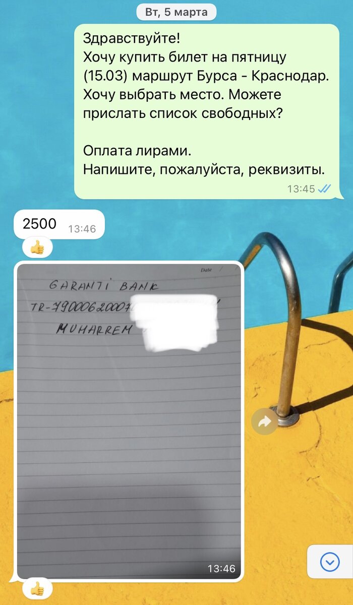 В итоге выяснила, что оплатить поездку можно рублями, лирами или долларами. Я выбрала вариант перевода денег в лирах по карте и попросила данные для этого. Мне прислали…мне прислали…реквизиты НА БУМАЖКЕ! Да, я получила фото данных, написанных на бумажке! Аааааааааааааа!